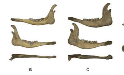 肿骨中华大角鹿(A),驼鹿(B),水牛(C)和家马(D)的下颌骨(蜘蛛网eeook.com...