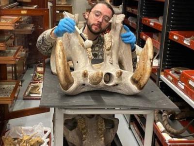 英国利兹市博物馆为一具河马头骨化石残骸找回缺失的巨大门牙 将公开展出(蜘蛛网ee...