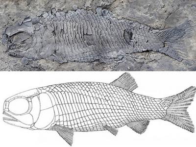 亚洲肋鳞裂齿鱼正型标本和复原图(徐光辉供图)亚洲肋鳞裂齿鱼正型标本头部放大图 (...