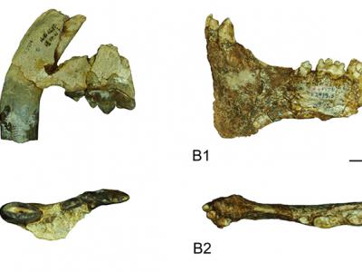 新修订的“意外巨颏虎”(A、山西临猗潘侯村化石材料,B、陕西蓝田公王岭化石材料)...
