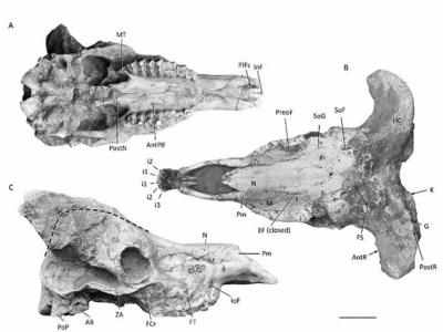 和政羊头骨腹视、背视和侧视图。(史勤勤供图)(蜘蛛网eeook.com报道)据中国科学...