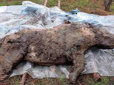 俄罗斯联邦萨哈共和国的西伯利亚永久冻土出土3.4万年前披毛犀木乃伊2014年发现的7个...
