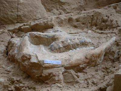 一块哺乳动物头骨化石,牙齿窝里的沉积物,原来是史前蜜蜂筑的巢穴。图片来源:拉萨...