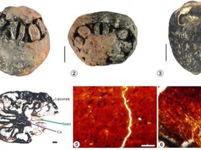 福建中新世南酸枣果实化石宏观形态(1-3)及微细结构特征(4-6)福建中新世南酸枣果...