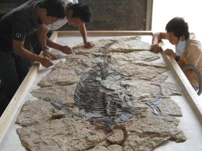 丁今朝(左一):解救“海怪”的人 世界最原始的龟类化石在他手下重现天日半甲齿龟...