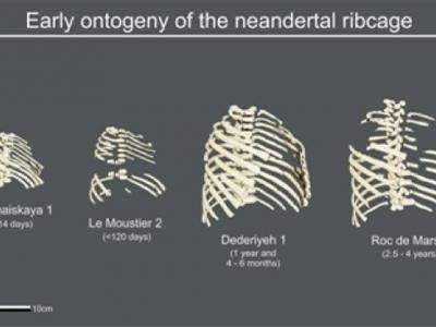 从出生到三岁的尼安德特人胸部发育对比。图片来源:美国物理学家组织网(蜘蛛网eeo...