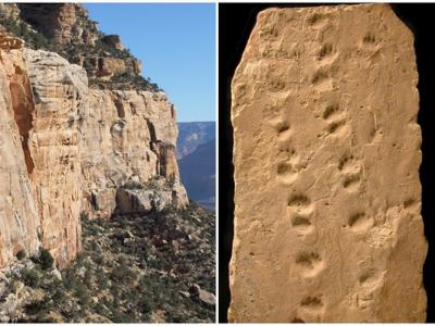 美国亚利桑那州大峡谷国家公园巨大岩石坠落 揭示3.13亿年前远古动物足迹(蜘蛛网ee...