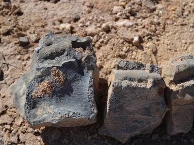 一块哺乳动物头骨化石,牙齿窝里的沉积物,原来是史前蜜蜂筑的巢穴。图片来源:拉萨...