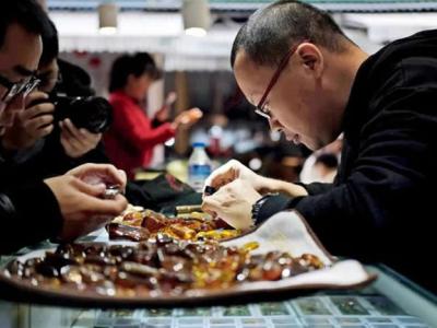 观看琥珀的邢立达。图/IC包裹了头骨的琥珀以包裹了头骨的琥珀为依据用计算机技术逐...