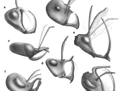 黑帝斯蚁(包括独角蚁)的头部素描图(杨定华绘)蚂蚁的系统发育关系不同蚂蚁的形态...