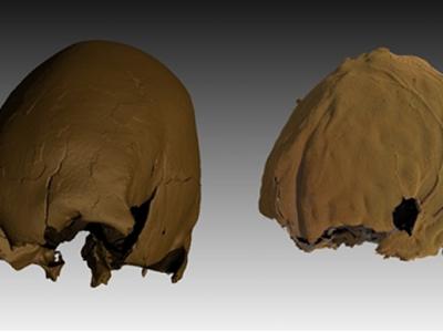 有意识的颅骨改形行为导致松花江人颅骨(左)和脑(右)严重变形。倪喜军研究团队 ...