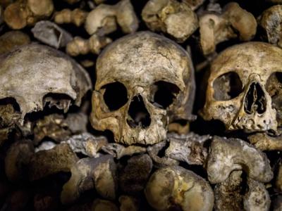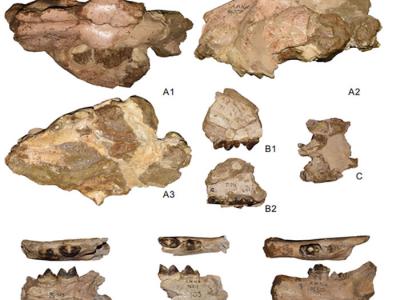 一块哺乳动物头骨化石,牙齿窝里的沉积物,原来是史前蜜蜂筑的巢穴。图片来源:拉萨...