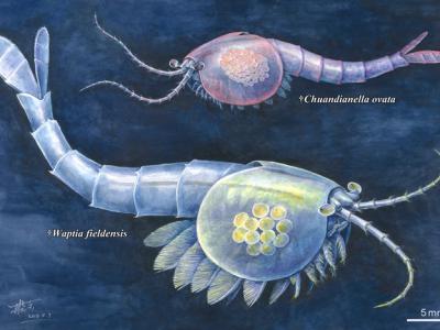 寒武纪两种瓦普塔虾类节肢动物在孵育繁殖策略上表现出演化权衡。上为寒武纪早期的卵...