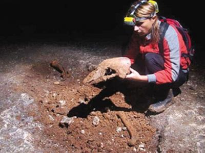 研究人员考古发现的洞熊头骨比现有棕熊头骨大很多 图片来源:...