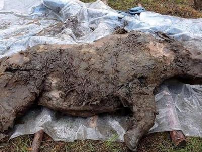 2020年8月,研究人员从俄罗斯萨哈共和国的冰层中取出了这具尸体。(图片来源:Boes...