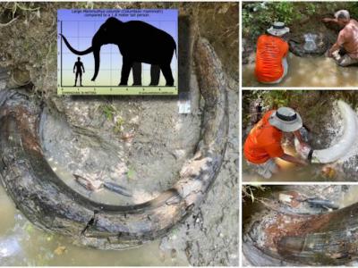 这根重达600磅的象牙属于哥伦比亚猛犸象(Mammuthus columbi)。(图片来源:MDEQ)...