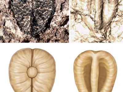 Lithouva是西半球最早的葡萄化石,来自哥伦比亚,距今约6000万年。上图为化石,并进...