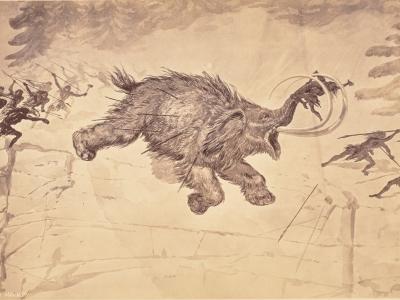 史前人类猎杀长毛象。越来越多的研究表明,这个物种——以及至少46种其他巨型食草动...