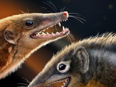 Feredocodon chowi(右)和Dianoconodon youngi(左)的生态重建。信用:IVPP(蜘蛛...