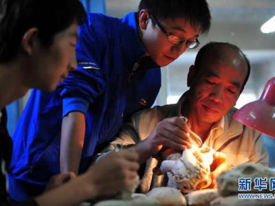 陈善勤正在传授化石修复技巧(蜘蛛网配图) (蜘蛛网报道)据中国甘肃网-民族日...