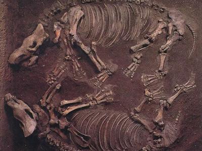 同一化石坑埋藏的两具披毛犀全身骨骼化石(蜘蛛网配图 图片:内蒙古博物院) (...