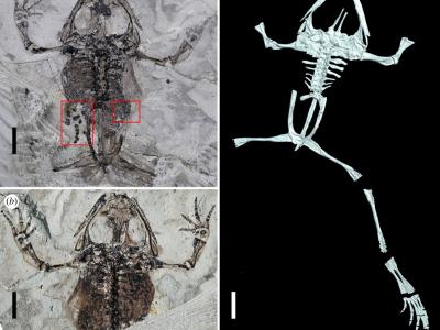 中国出土的肚子里装满卵的青蛙化石是同类中最古老的。图像:英国皇家学会会报B辑:生...