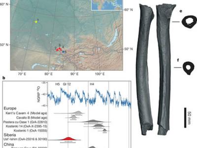 1: Ust’-Ishim; 2: Chagyrskaya 洞; 3: Okladnikov洞; 4: 丹尼索沃 洞; 5: Kara...