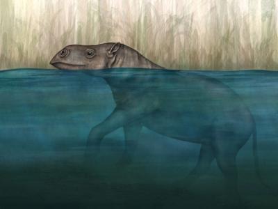想像图:一只Anthracobunid 在沼泽中涉水前进。插画:Emily M. Eng, NG Staff. 来...