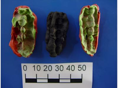 在Huseby Klev遗址发现的一块被咀嚼过的沥青的铸模。致谢:沃纳·亚历山大森。(蜘蛛...