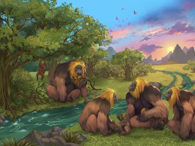 中国南方森林中一群巨猿的艺术印象。学分:Garcia/Joannes-Boyau(南十字大学)(蜘蛛...