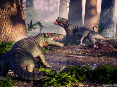 Pampaphoneus biccai的艺术再现。鸣谢:马蒂奥·卡斯特罗的原创作品(蜘蛛网eeook.c...