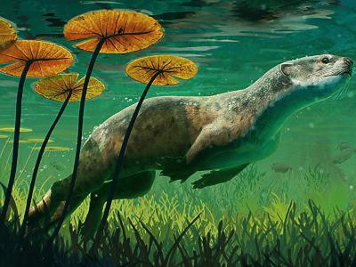 艺术家在自然的淡水环境中对potamathorium valletoni的印象。鸣谢:Gabriel Ugueto ...