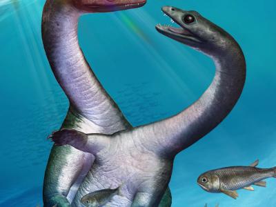 艺术家对侏罗纪蛇颈龙的诠释。在西德克萨斯州发现的蛇颈龙化石是唯一在该州发现和描...