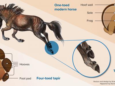 四趾貘(左)和单趾马(右)的足底(下)视图(Nuria Melisa Morales-García)。中间是由K...