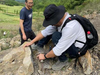 雍军等人在野外探寻化石。 邢立达课题组供图野外暴露的足迹化石。 邢立达课题组供图...