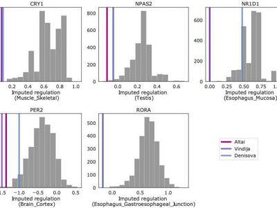 许多昼夜节律基因在现代人和古人类之间有不同的调节。1,000个基因组中的2,504个人...