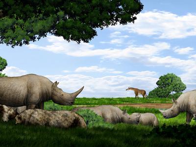 临夏盆地晚中新世伊朗犀生态复原(陈瑜绘)临夏盆地晚新生代地层剖面及其犀牛化石的...
