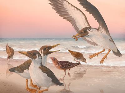 艺术家重建了最后一只已知的齿鸟Janavis finalidens,在其原始环境中被共同出现的“...