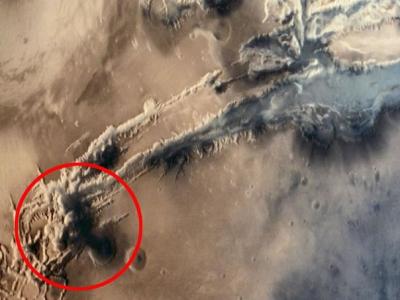 印度探测器在火星大峡谷拍到类似蘑菇云升起的影像 网民企图证明云团是由核爆引...