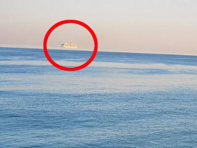 海市蜃楼“上蜃景”:英国男子在多塞特郡伯恩茅斯海岸拍到巨大邮轮飘浮在空中(蜘蛛...