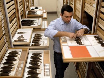 在美国华盛顿特区史密森学会一个房间中,Ricardo Moratelli正在研究数百只死蝙蝠...