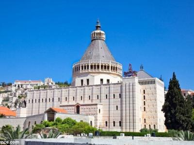 巴勒斯坦地区北部古城拿撒勒(现位于以色列北部)的教堂 位于两座坟墓之间、位...