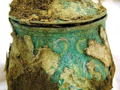 图为可能是加洛林王朝最大的银壶,或有1200年历史。 这批宝藏中还有一个早期的...