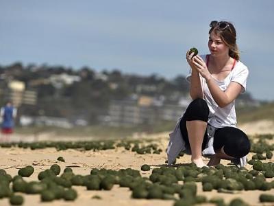 澳洲悉尼迪怀沙滩一夜之间出现上千个绿球