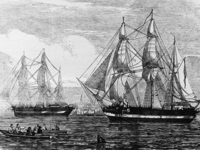 “幽冥号”及“惊恐号”于1848年失踪。图为探险船的画像。 总理哈珀(右)宣布有...