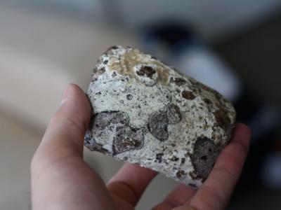 一个新西兰商人拿着一块龙涎香(或称「灰色琥珀」)。摄影:Christopher Kemp (...