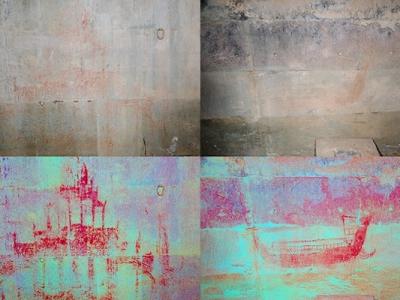 专家用尖端技术,令墙壁(上)的画作重现(下)。 (蜘蛛网报道)柬埔寨有9百年历史...
