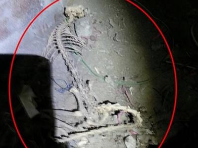 美国一户人家地下室发现一副完整的怪物野兽骸骨 最近,美国一户人家在进行电缆安...