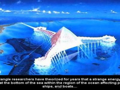 水晶金字塔还原图,有一派科学家认为它是发生意外而沉入海底。 百慕大三角洲(Th...
