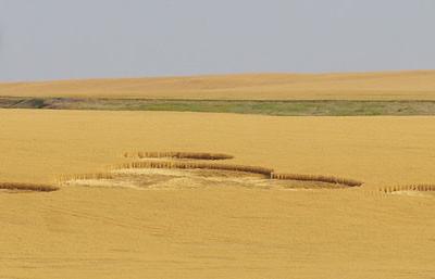 辛蒂家的麦田出现像米老鼠耳朵的神秘麦田圈 美国华盛顿州东部2012年出现神秘的麦...